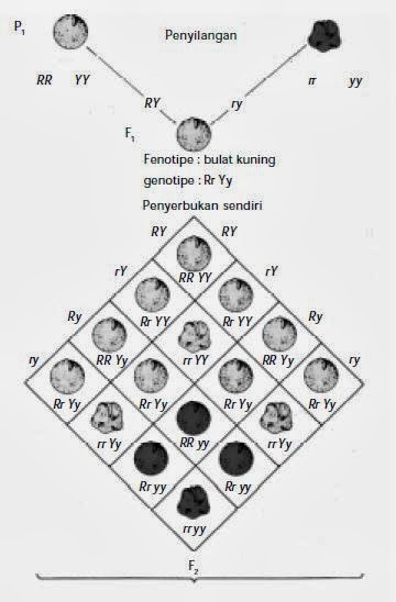 antara galur murni biji bulat kuning dan biji kisut hijau menghasilkan generasi